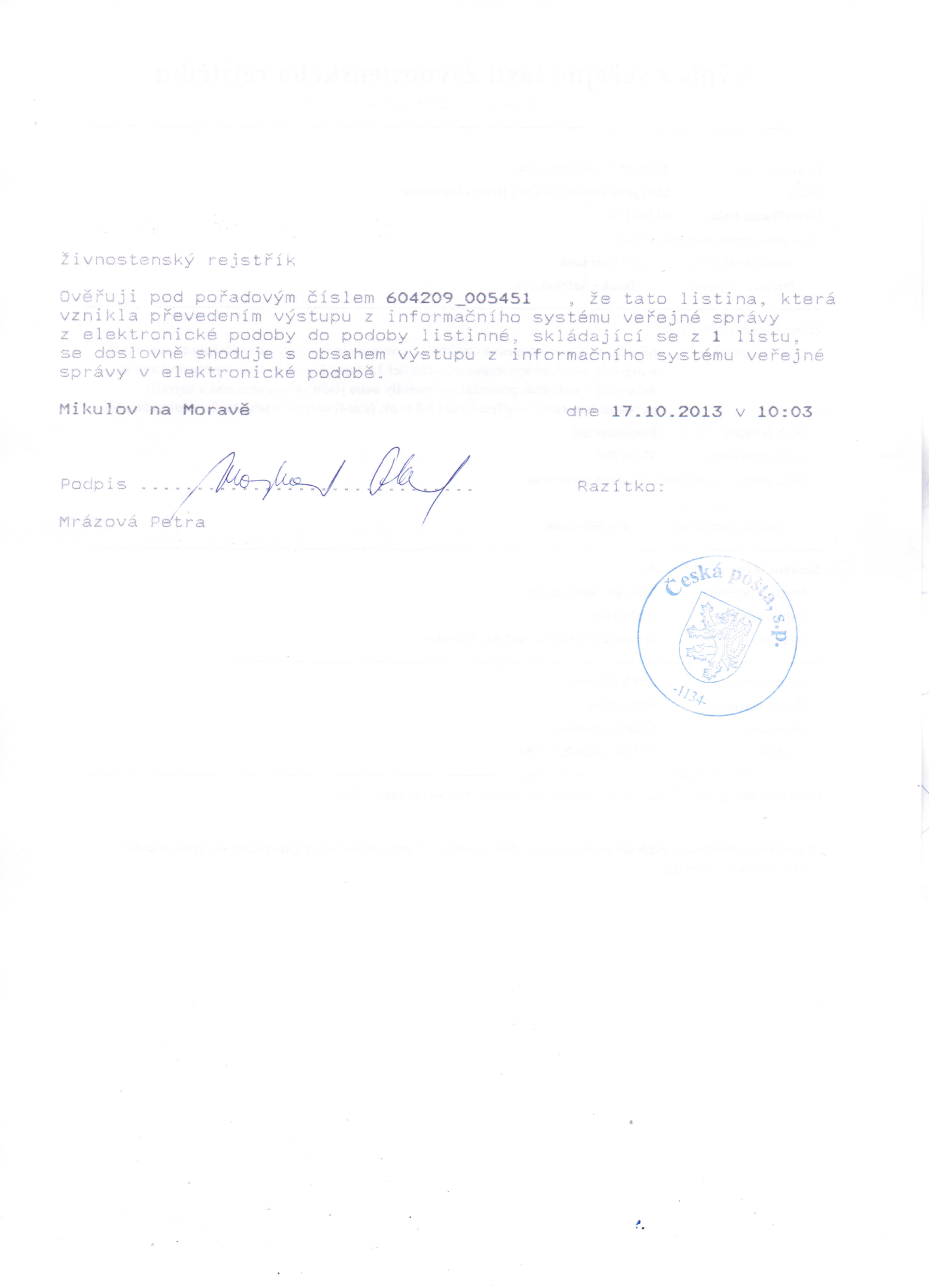 Výpis z obchodního rejstříku: strana 1,